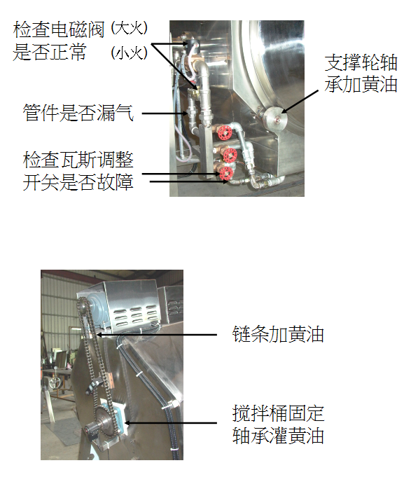 3.   检查炒锅转动时是否异常。                           (D 保养)